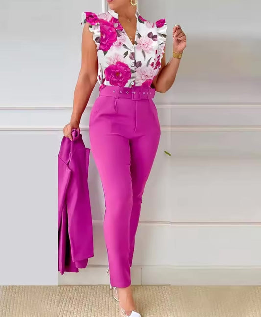 Poupar 42%SoftSet – Conjunto casual de blusa e calça
